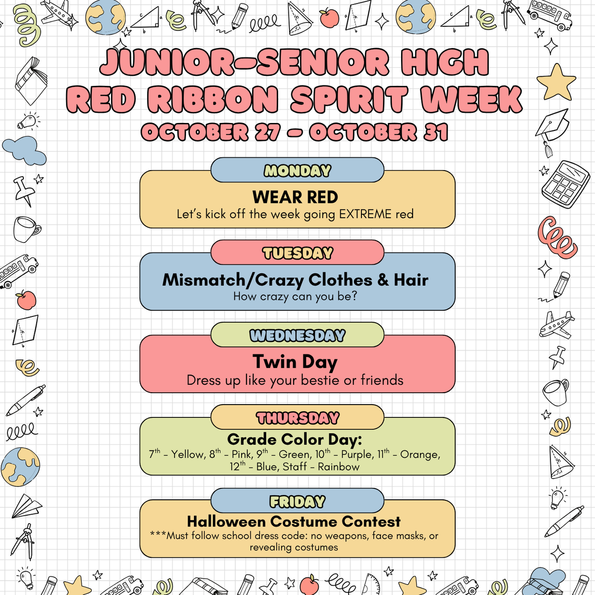 SADD announces Red Ribbon Week Spirit Days at Junior-Senior High School